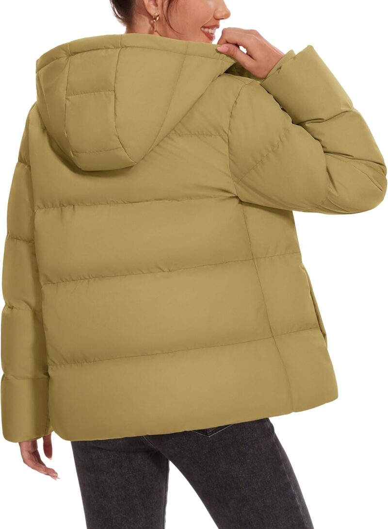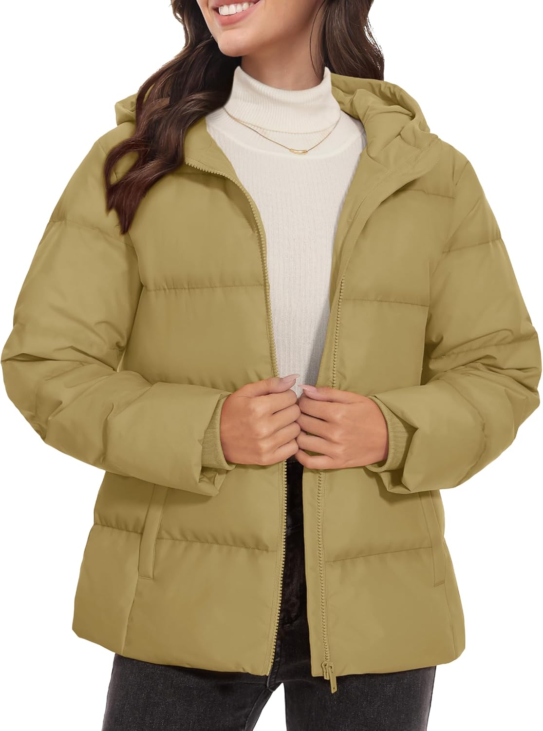 Women Down Jacket with Hood Lightweight Thermal Quilted Coat with Pockets Zip-up Winter Warm Jacket