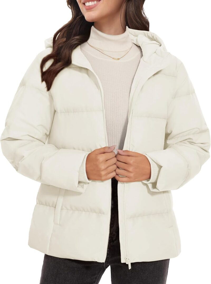 Women Down Jacket with Hood Lightweight Thermal Quilted Coat with Pockets Zip-up Winter Warm Jacket
