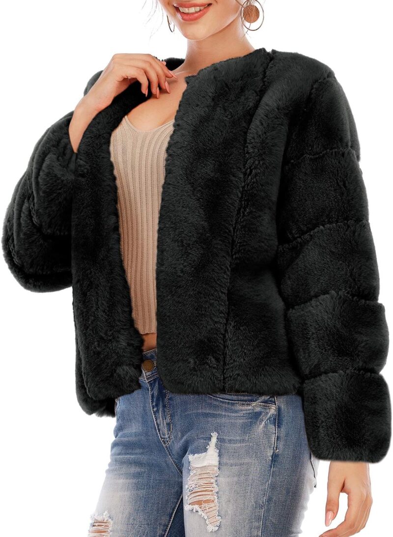 Women Long Sleeve Open Front Fuzzy Faux Fur Coat