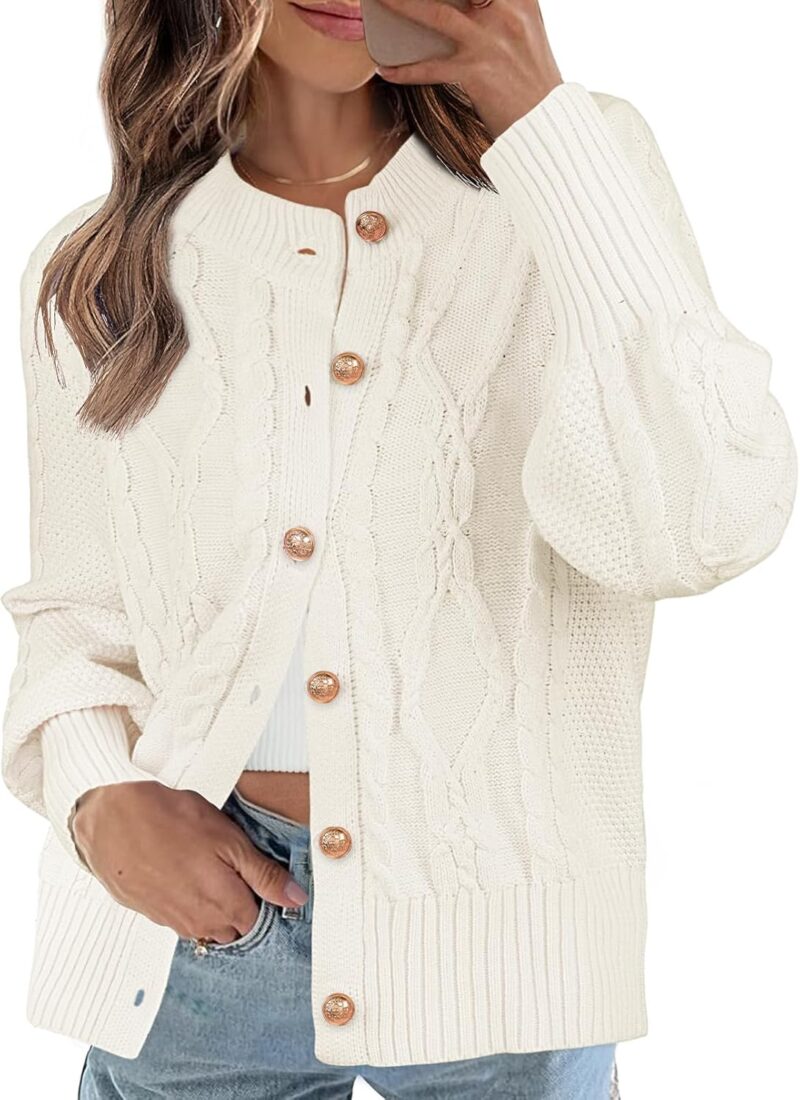 Women’s 2026 Fall Long Sleeve Sweater Cardigan Cable Knit Open Front Button Outwear Coats