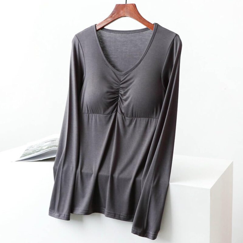 Women’s Bottoming Shirt Tops Casual V Neck Chest Pad Tee Shirts Fashion Comfy Blouses Tee 2026 Fall Tops Clothes