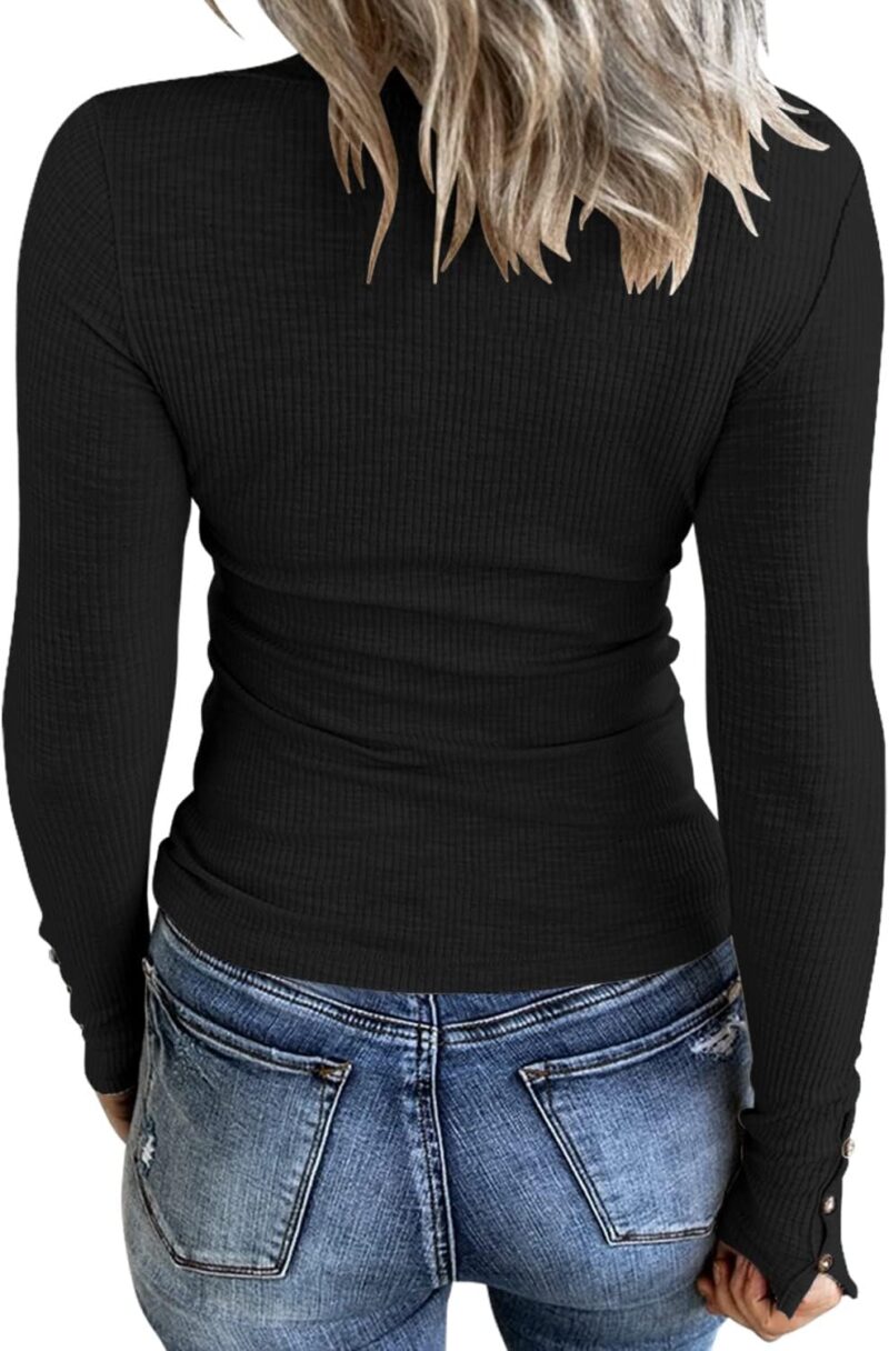Women’s Long Sleeve Henley T Shirts Button Down Slim Fit Tops Scoop Neck Ribbed Knit Shirts