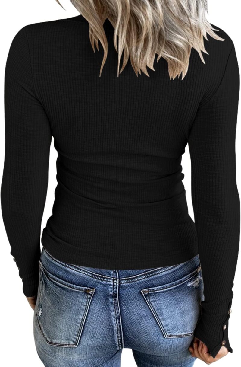 Women’s Long Sleeves Ribbed Knit Tunic Shirts Scoop Neck Button Down Tops Casual Henley Tee Shirt Slim Fit Blouses