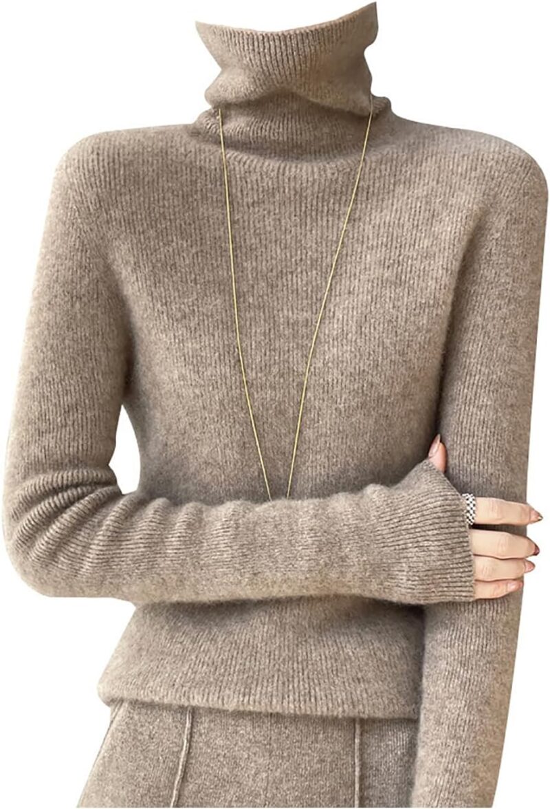 Women’s Merino Wool Turtleneck Cashmere Sweater,Solid Color Long Sleeve Soft Knitted Pullover Tops Bottoming Shirt