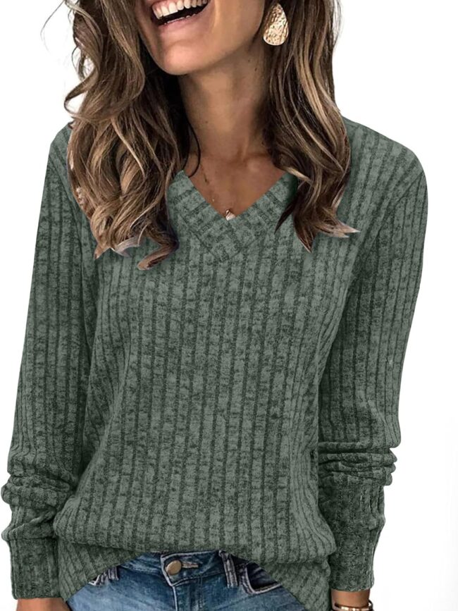 Features: casual long sleeve shirts with classic V-Neck design, loose fit style, basic tunic tops for leggings. It will be great for early fall or winter.