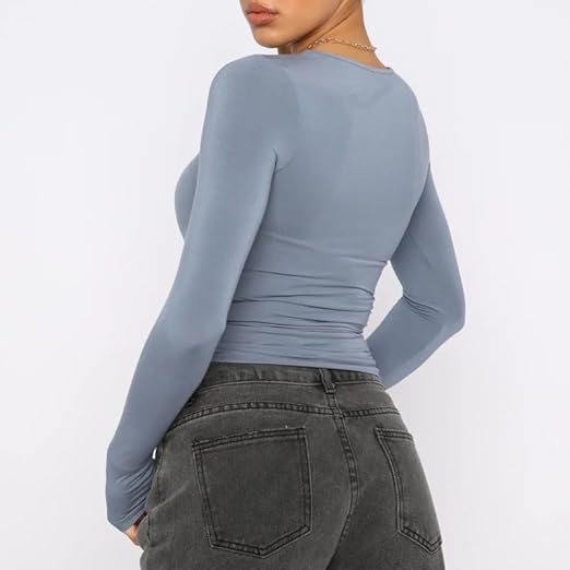 Features: Fashion and casual design. Solid color, long sleeve, slim fitted, crew neck shirt tee. Basic tight skinny tee top blouse, show waist cropped streetwear clothes.