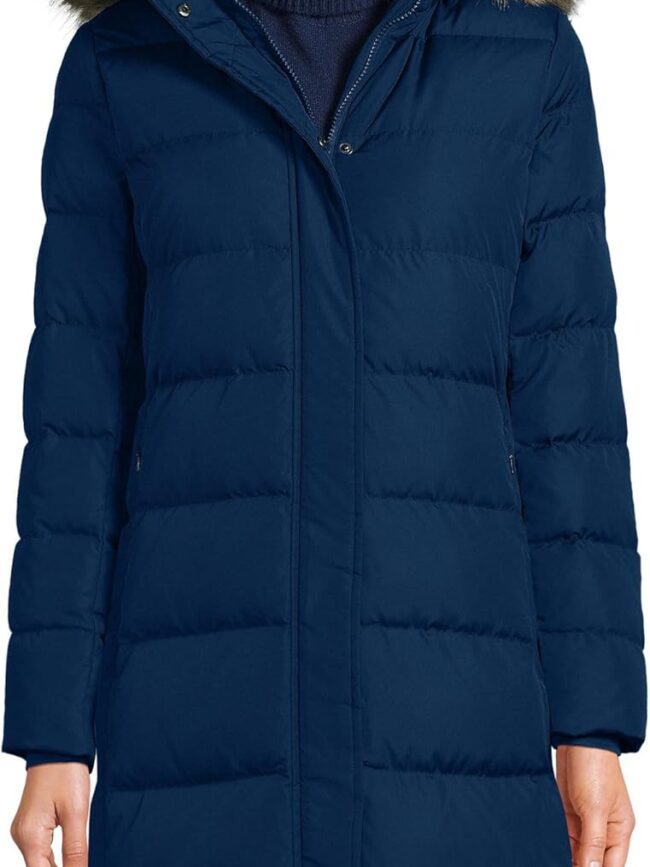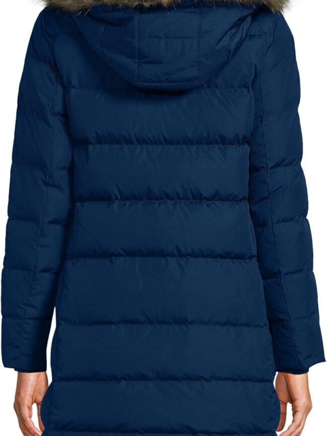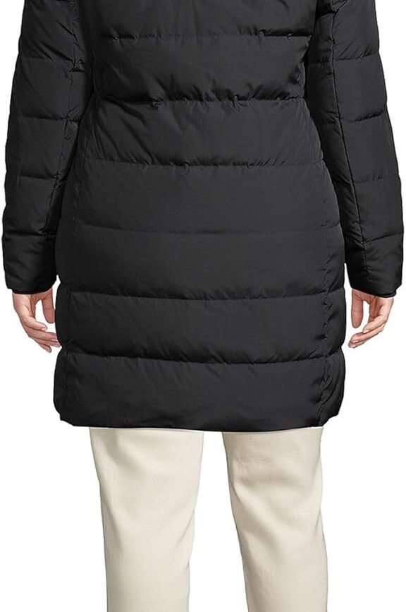 Quality Materials: 100% nylon water resistant shell. 600 fill power down insulation. Ethically sourced goose down and feathers; Removable hood with faux fur trim. Machine wash coat. Spot clean hood.