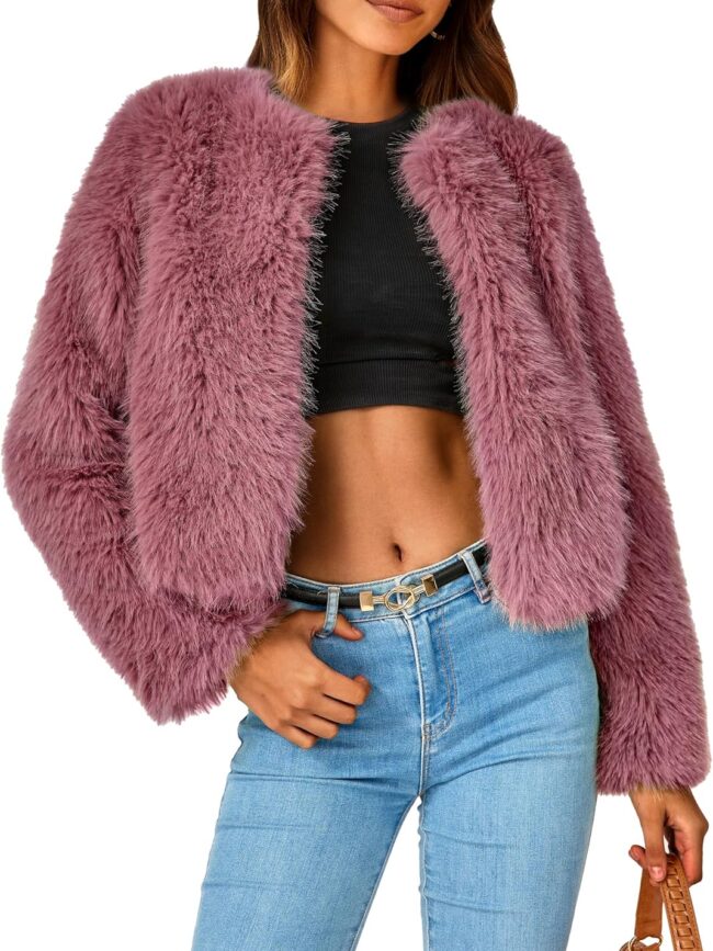 FEATURES: Fuzzy Winter Coats For Women/Cropped Fleece Jacket Women/Chic Fall Outfits For Women 2026/Loose Fit Faux Fur Coat/Plain Long Sleeve Outerwear/Winter Clothes For Women/Winter Jackets For Women Casual/Open Front Sherpa Jacket Women/ Jacket Women With Pockets