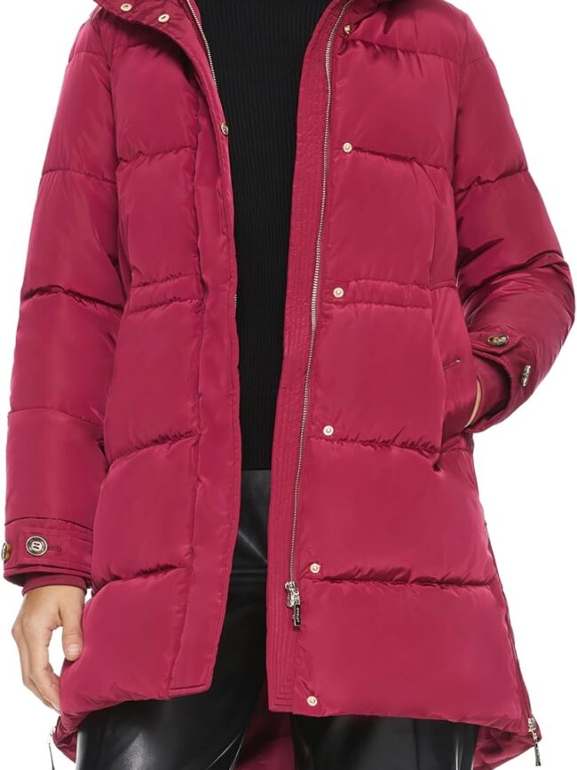 Sealed against cold weather - A stand collar, a protective double enclosure, windproof ribbed cuffs, side snap zipper openings at the hem, and drawstrings at the waist ensure a custom fit, this women's winter coat is designed for optimal warmth and comfort!