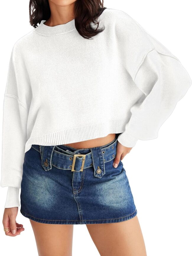 Material: This women's crewneck crop sweater is made of skin-friendly knitted fabric, soft to the touch, warm and strecthy, very comfortable to wear in early spring, fall and winter.